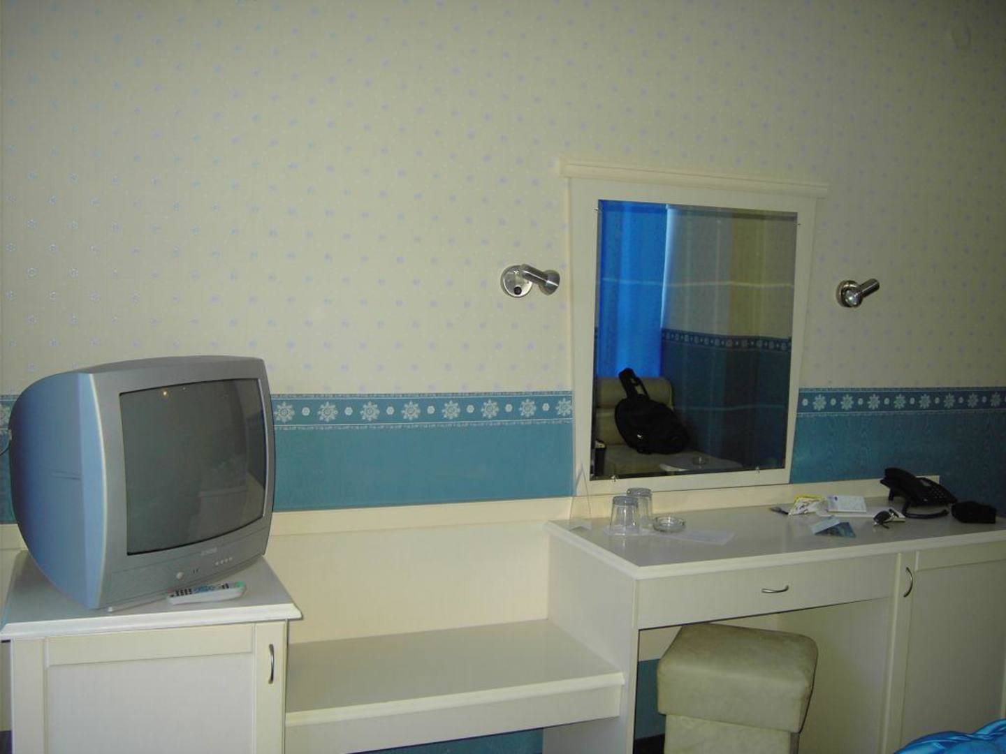 Ablage, Fernseher, Spiegel im Zimmer