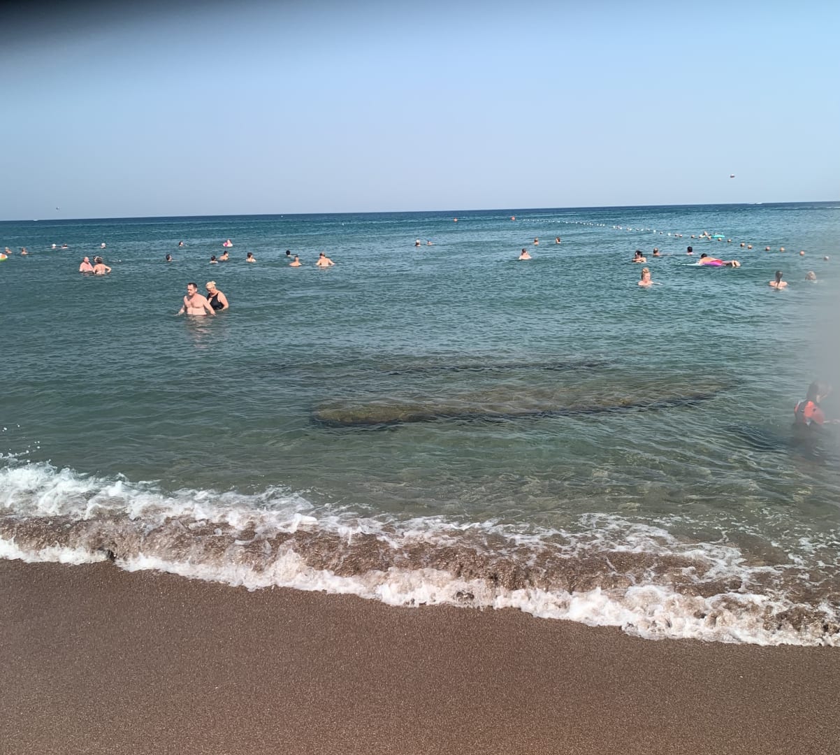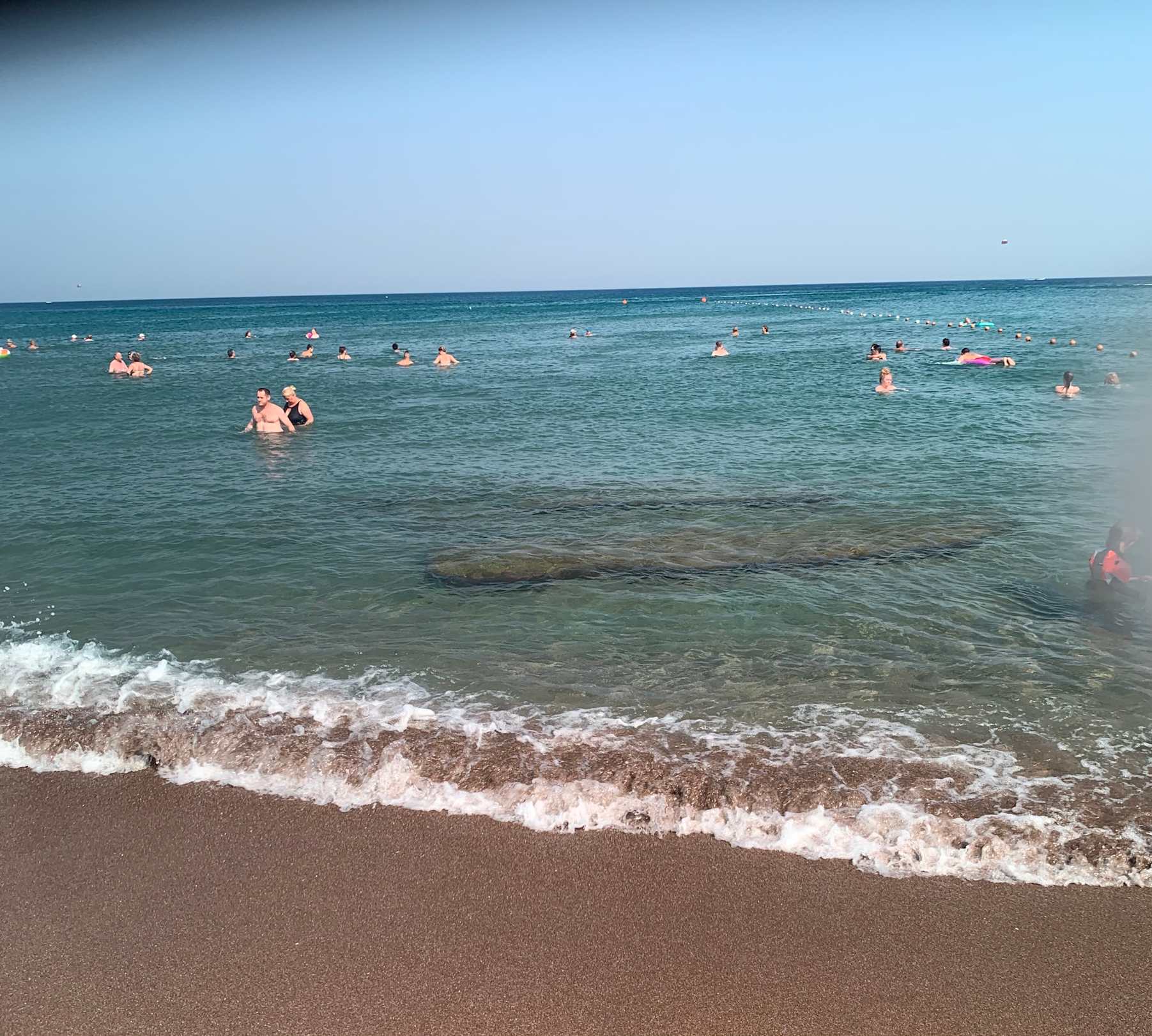 Felsen rechts im Meer beim Apollo Beach Hotel. Achtung auch im Meer vor Apollo BLU Hotel!