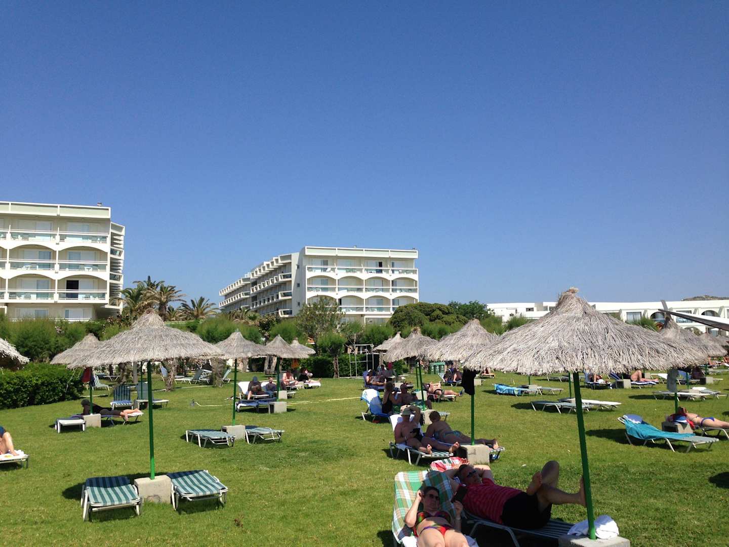 Blick vom Strand auf das Hotel