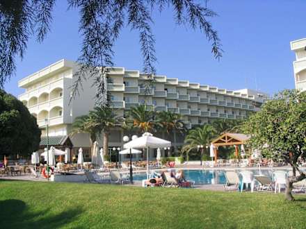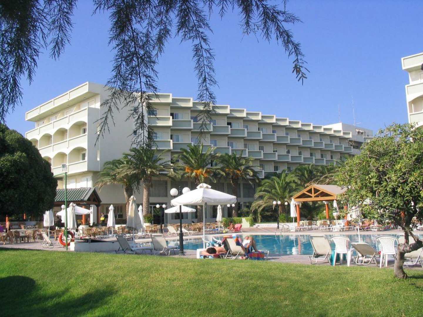 Das Hotel mit Pool aus Strandsicht