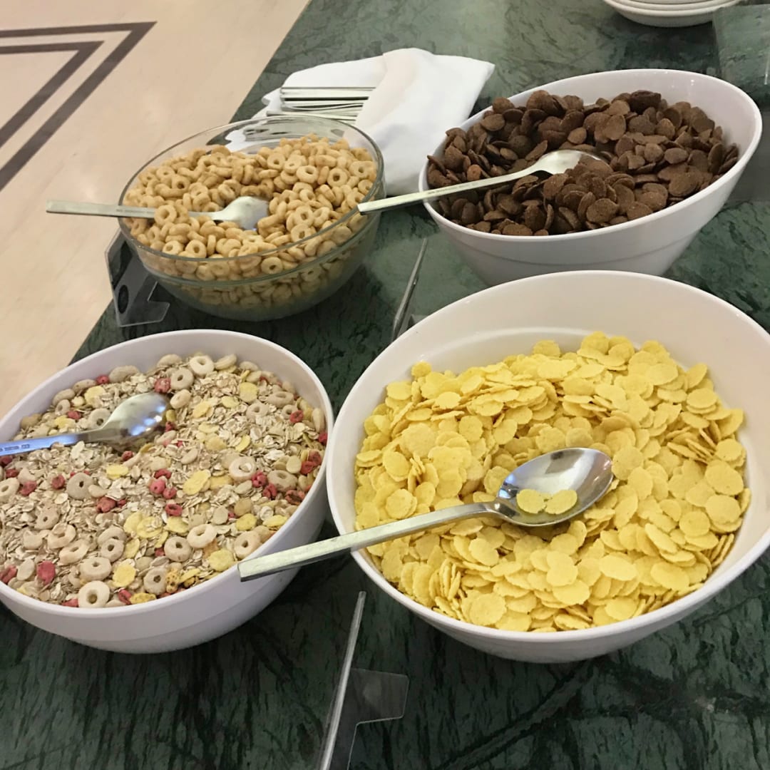 Frühstück, große Auswahl an Cerealien.