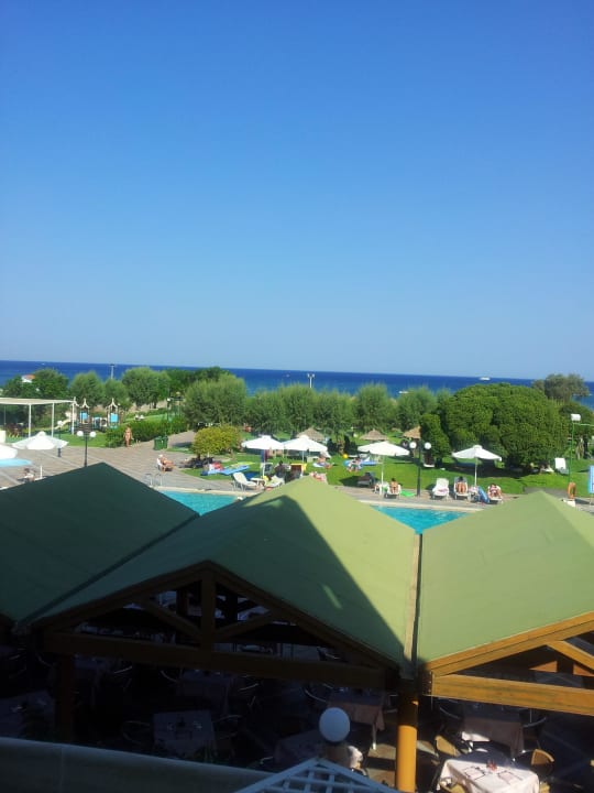 Der Ausblick vom Zimmer über den Pool hinweg