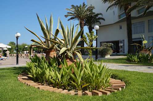 aus einigen Amphoren wachsen Kakteen