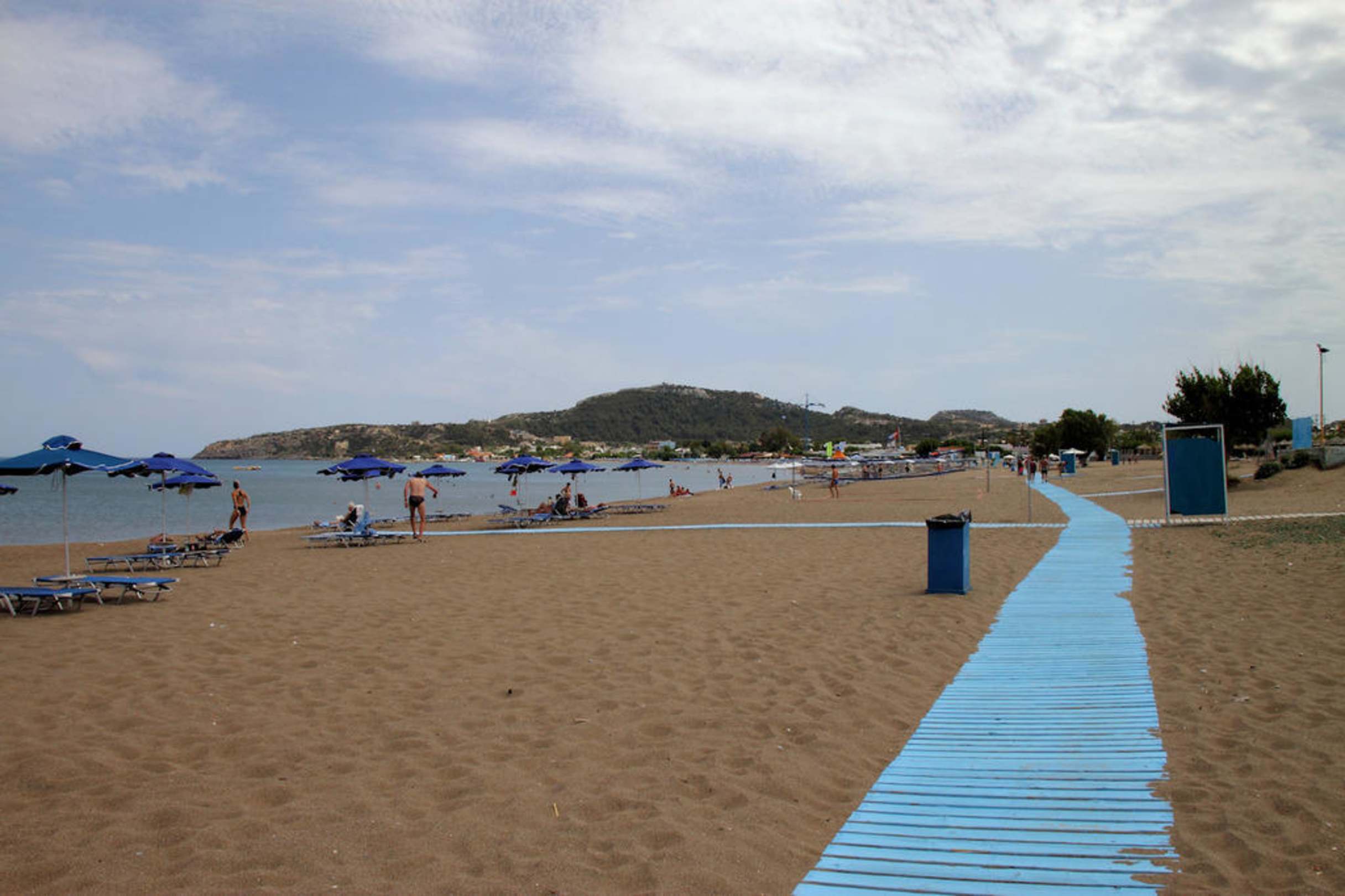 Der Strand von Faliraki ist feinsandig mit ganz wenigen größeren Kiesel. Lediglich der südliche Strand in Hafennähe ist kieseliger und im Wasser sind Felsen.