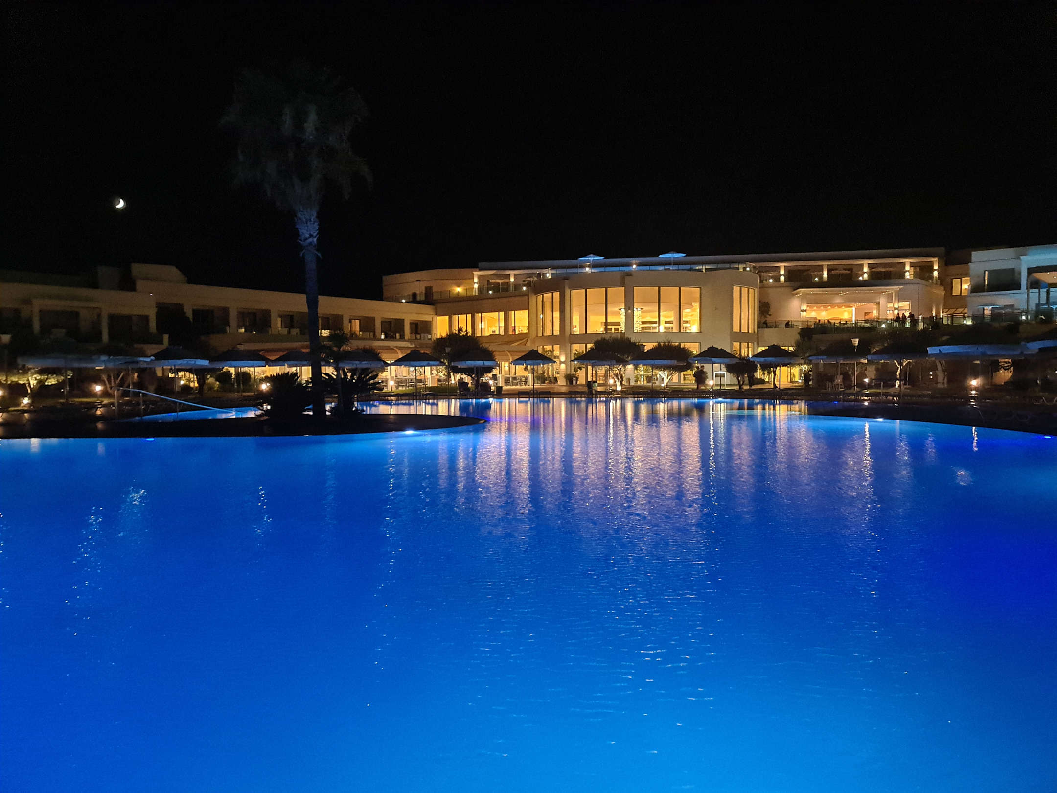 Pool Abends mit Blick zum Haupthaus
