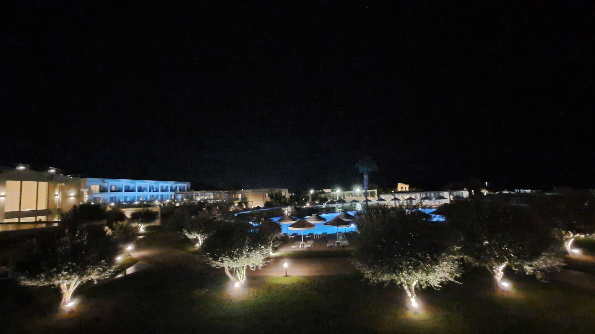 Hotelanlage bei Nacht