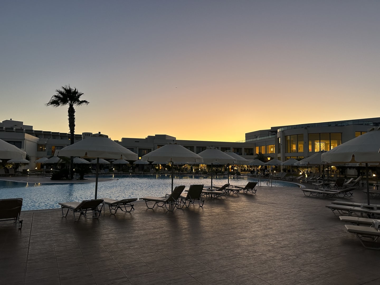 Abendstimmung in der Hotelanlage