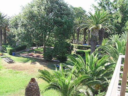 PalmengartenDas Bild zeigt den Garten der Anlage vom Balkon eines Zimmers im Nebengebäude in Richtung Minigolfplatz