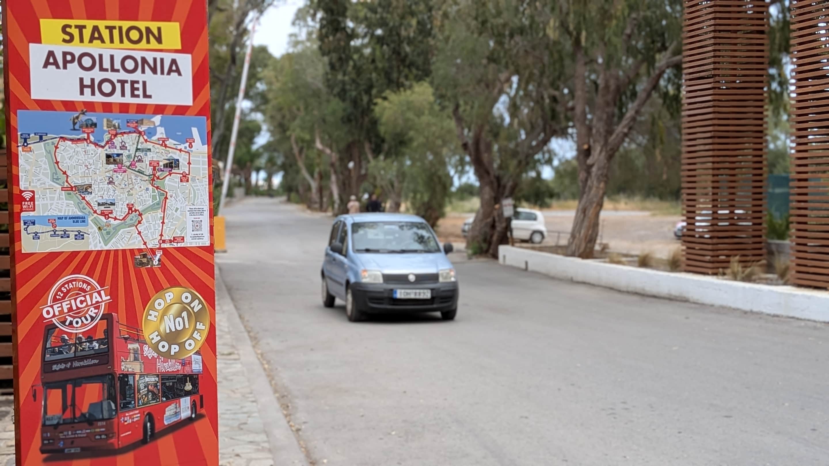 An der Hotel-Gelände-Einfahrt befindet sich die Haltestelle des Hop-On / hop-Off Bus
