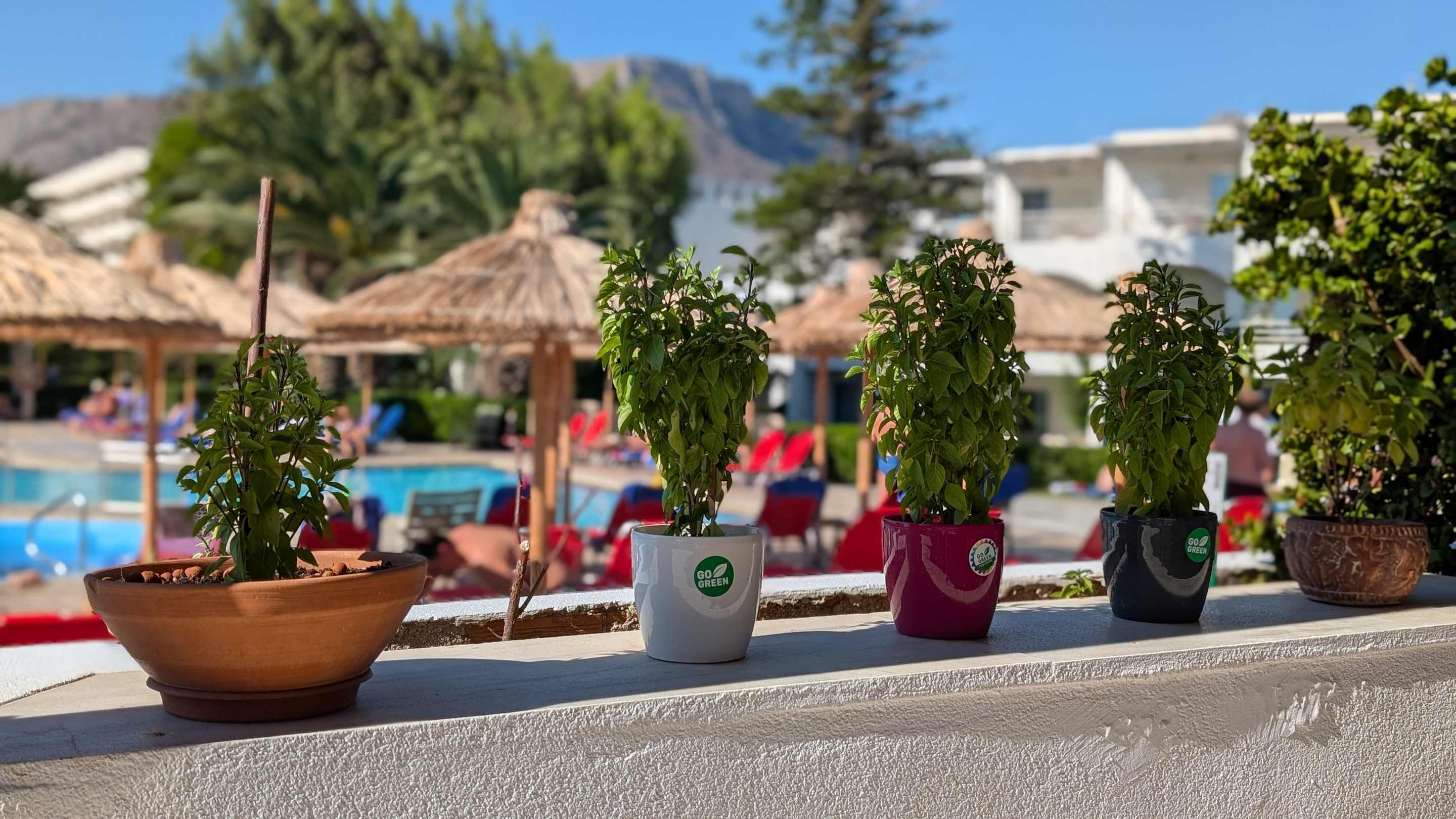 Im Apollonia Beach blüht es! Das Hotel setzt auf ökologische Gartenbautechnik. Bewundere das Pflanzenwachstum an der Snackbar – auch im September!