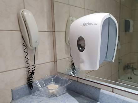 Seifenspender gibt es am Waschbecken und in der Dusche/Badewanne
