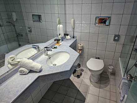 Modernes und geräumiges Bad. Es fehlt an nichts, was man im Bad nicht gebrauchen könnte. Hinweis: im Bad gibt es aus Sicherheitsgründen = keine Steckdose.