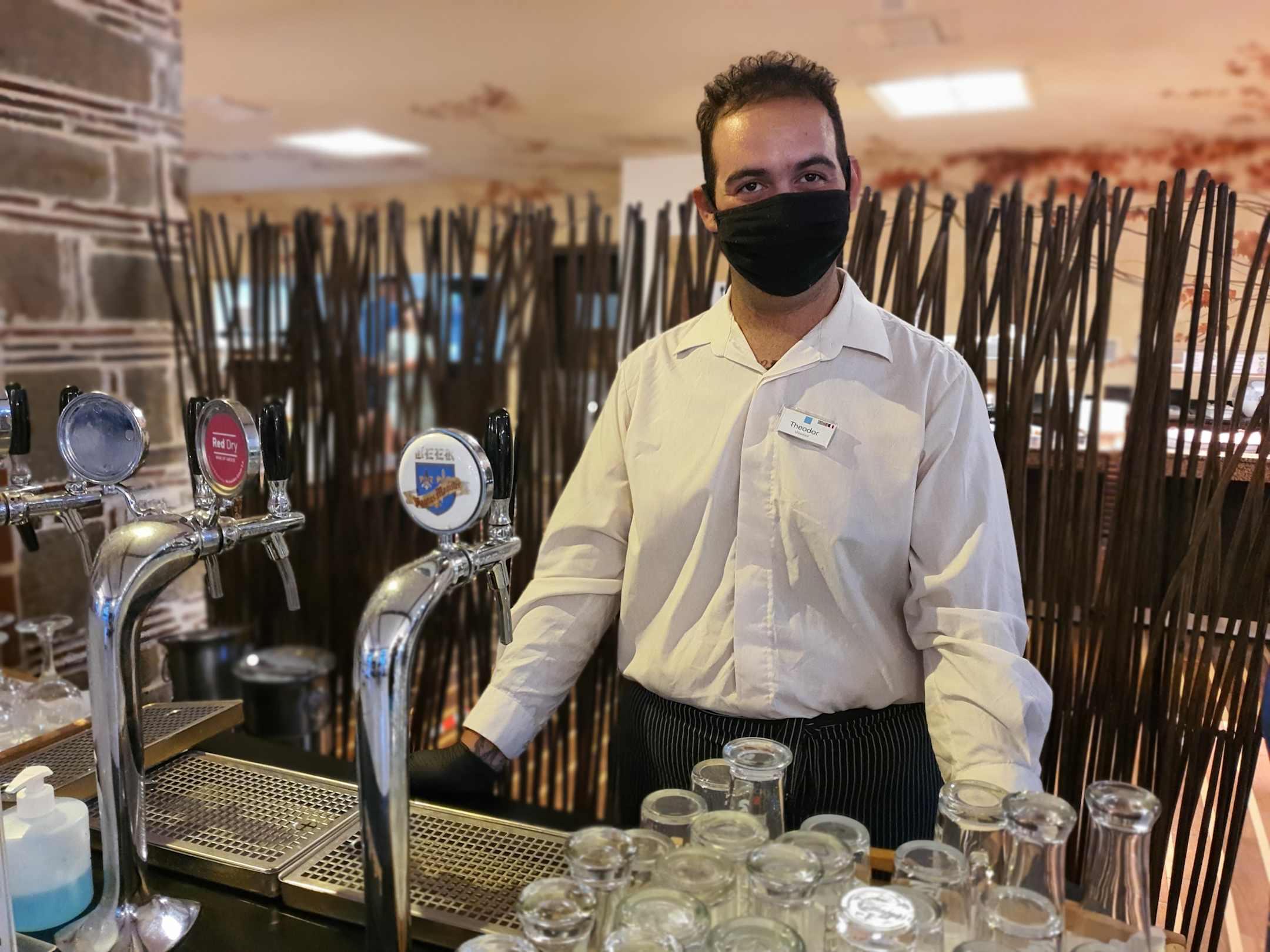 Getränke-Ausgabe durch Mitarbeiter des Hotels