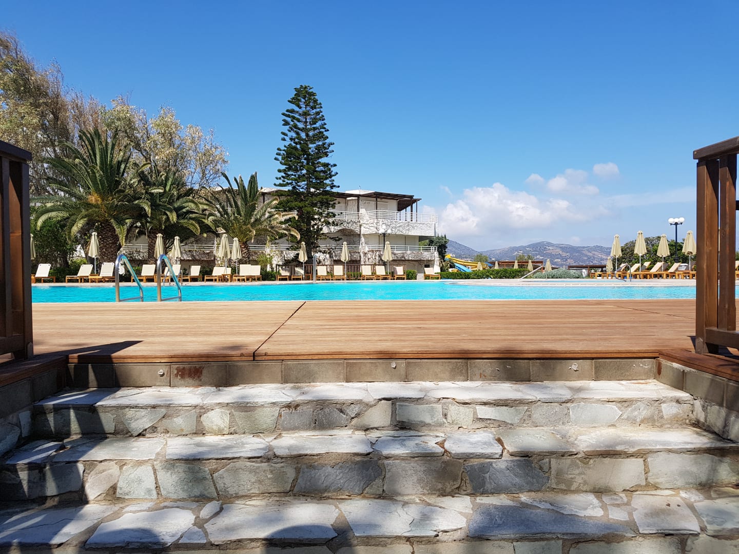 Vom Kinderclub und Basketballplatz führt eine kleine Treppe direkt zum Hauptpool. Natürlich gibt es noch viele weitere Wege. Auch Behindertengerechte Zugänge -in alle Bereiche- sind ausreichend vorhanden.