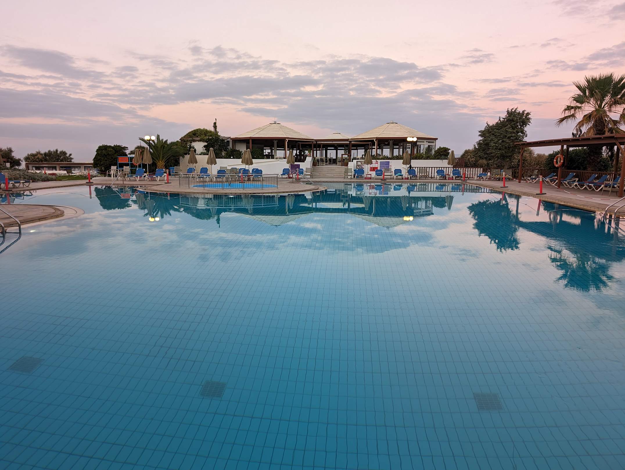 Hauptpool am Abend / im Hintergrund die Snackbar