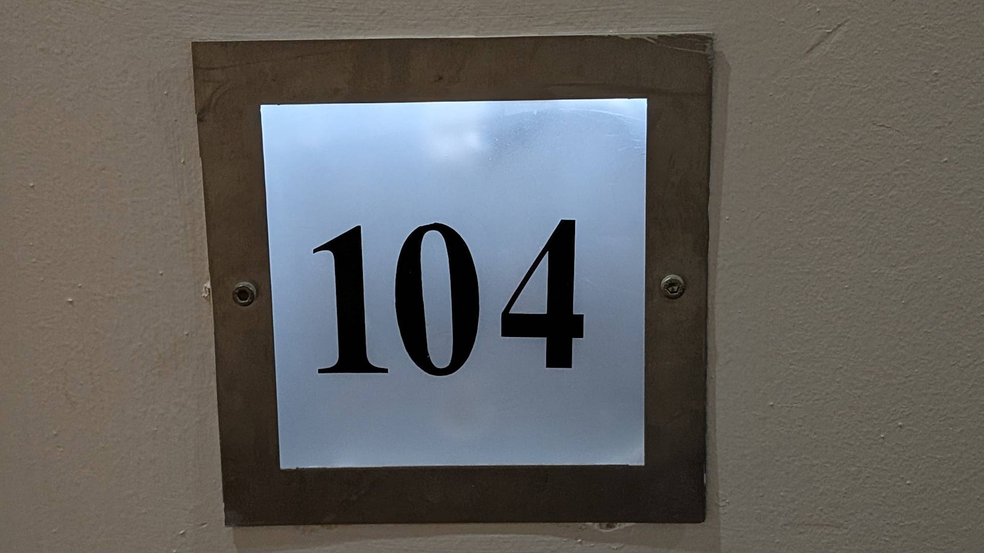 Zimmerschild 104 ist beleuchtet