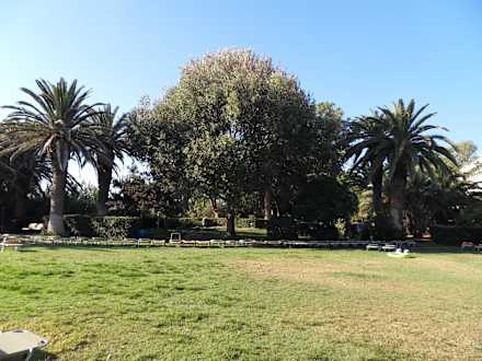 Ein Gartenanlage mit Liegen