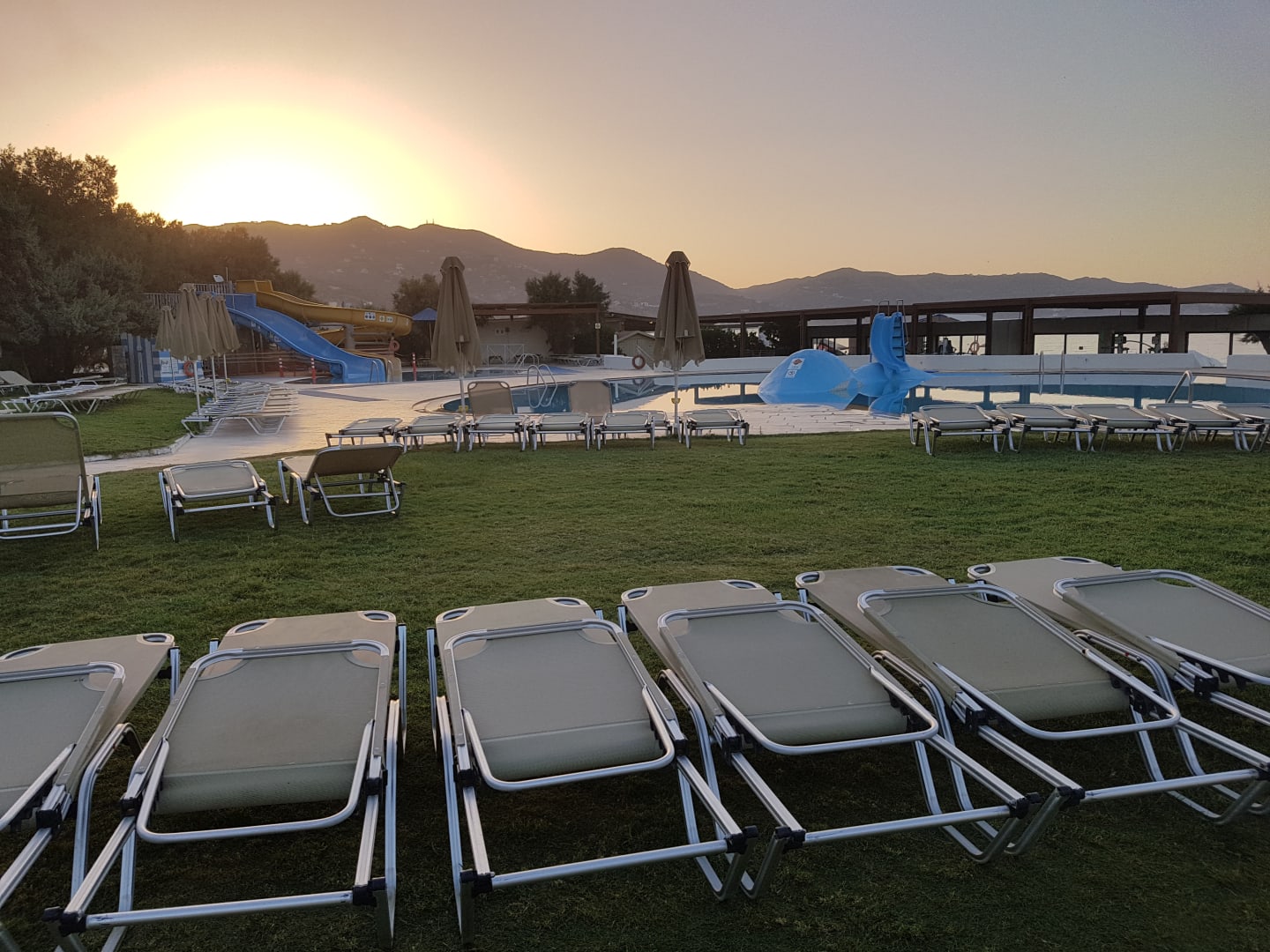 Der Kinderpool am Abend (kurz vor Sonnenuntergang). Der Bereich um die Kinder- und Baby-Pools wird täglich gereinigt und aufgeräumt. Die Liegen werden täglich gerade ausgerichtet.