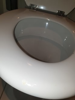 ZimmerToilettensitz mit Urinfleck vom vorherigen Gast - wurde selbst nach Reklamation an der Rezeption nicht gesäubert!