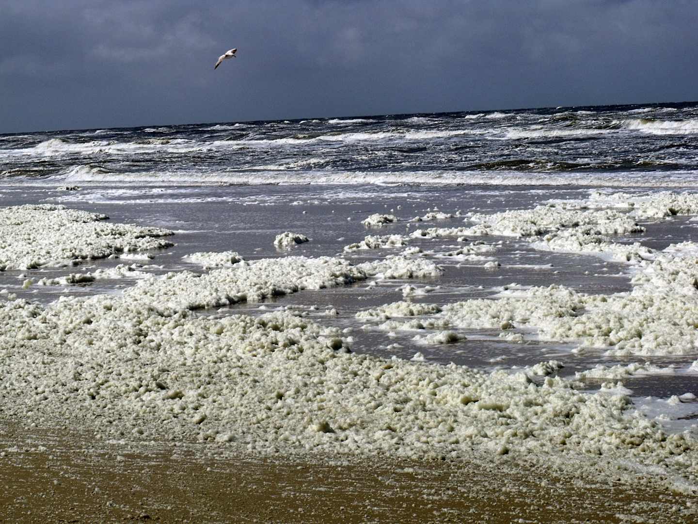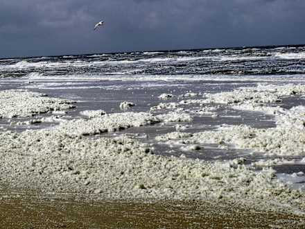 Aufgewühlter Strand in Egmond im Mai