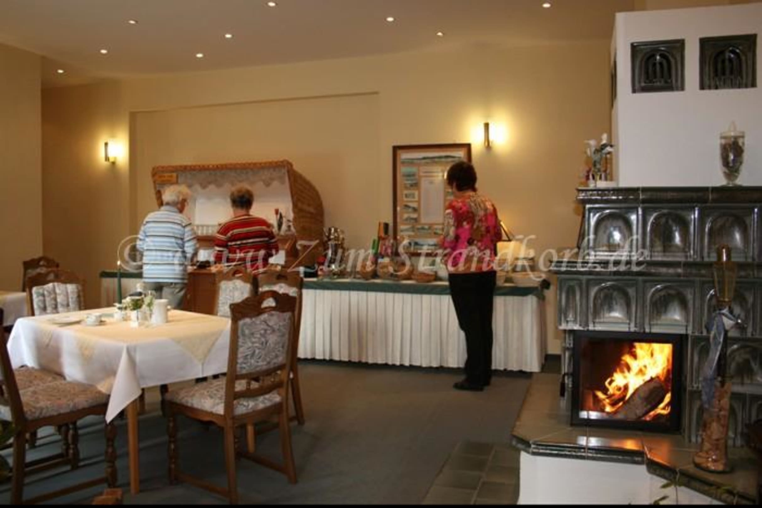 Gemütlicher Frühstücksraum mit Strandkorb-Büffet