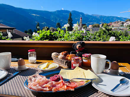 Frühstück auf dem Balkon mit schöner Aussicht