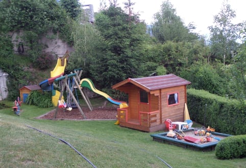 Spielhäuschen mit "Abenteuerberg" im Hintergrund