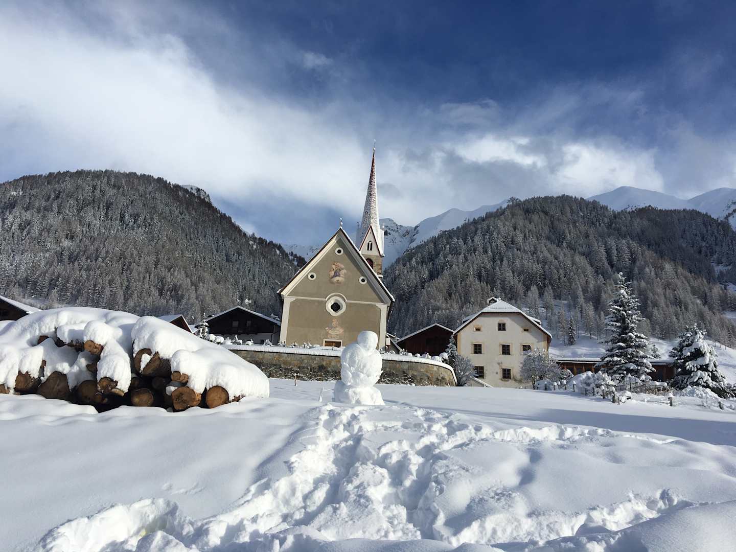 Die Pfarrkirche Lappach, vom Haus gesehen