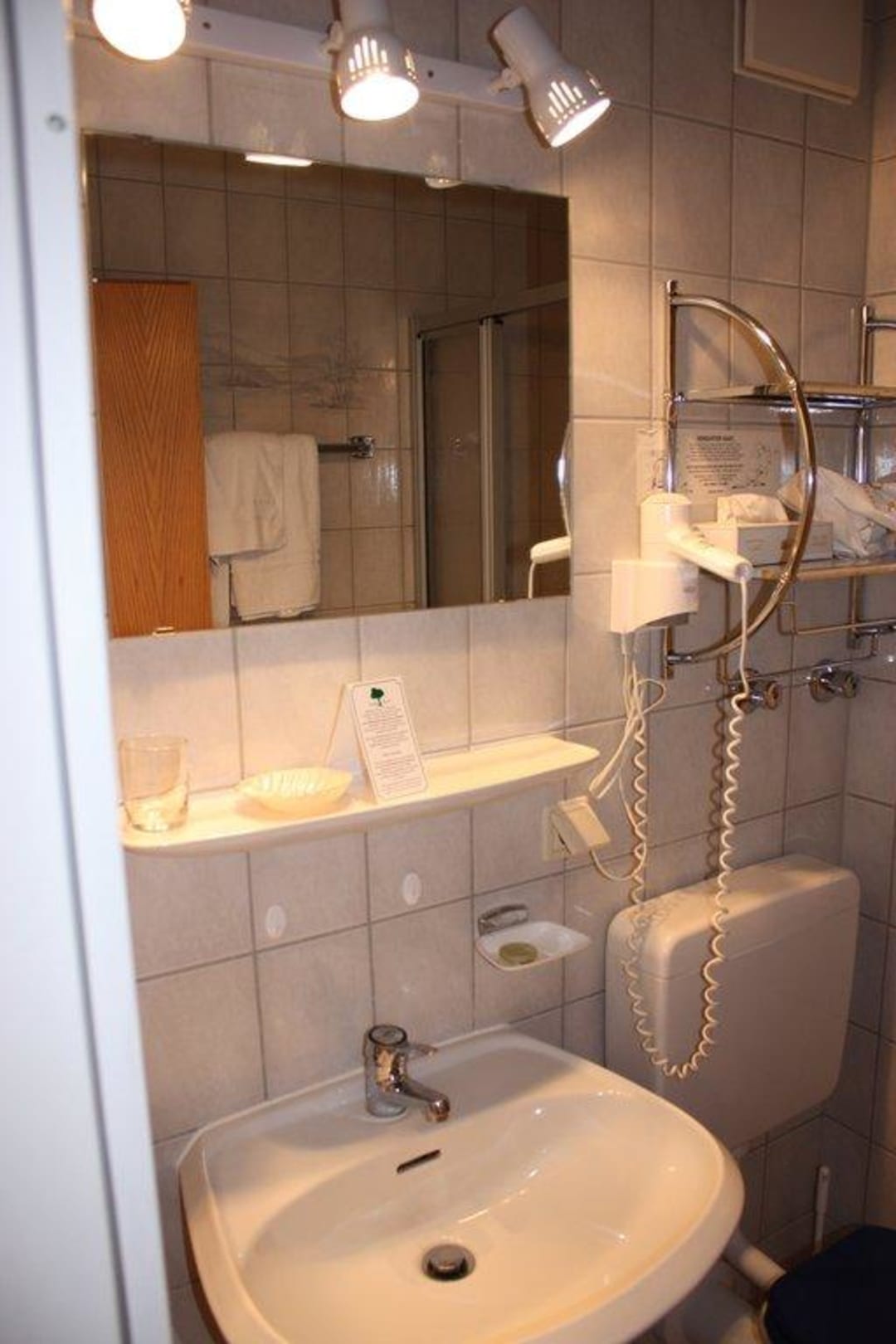auf dem Foto nicht zu sehen, der Schminkspiegel.