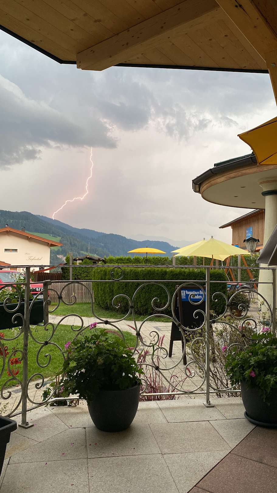 Gewitterbeobachtung von der überdachten Terrasse, Appartment im Erdgeschoss.