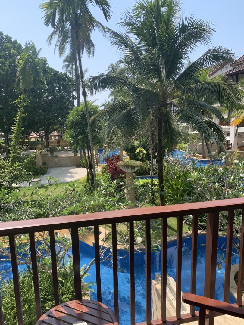 Aufnahme vom Balkon auf den Access-Poolbereich