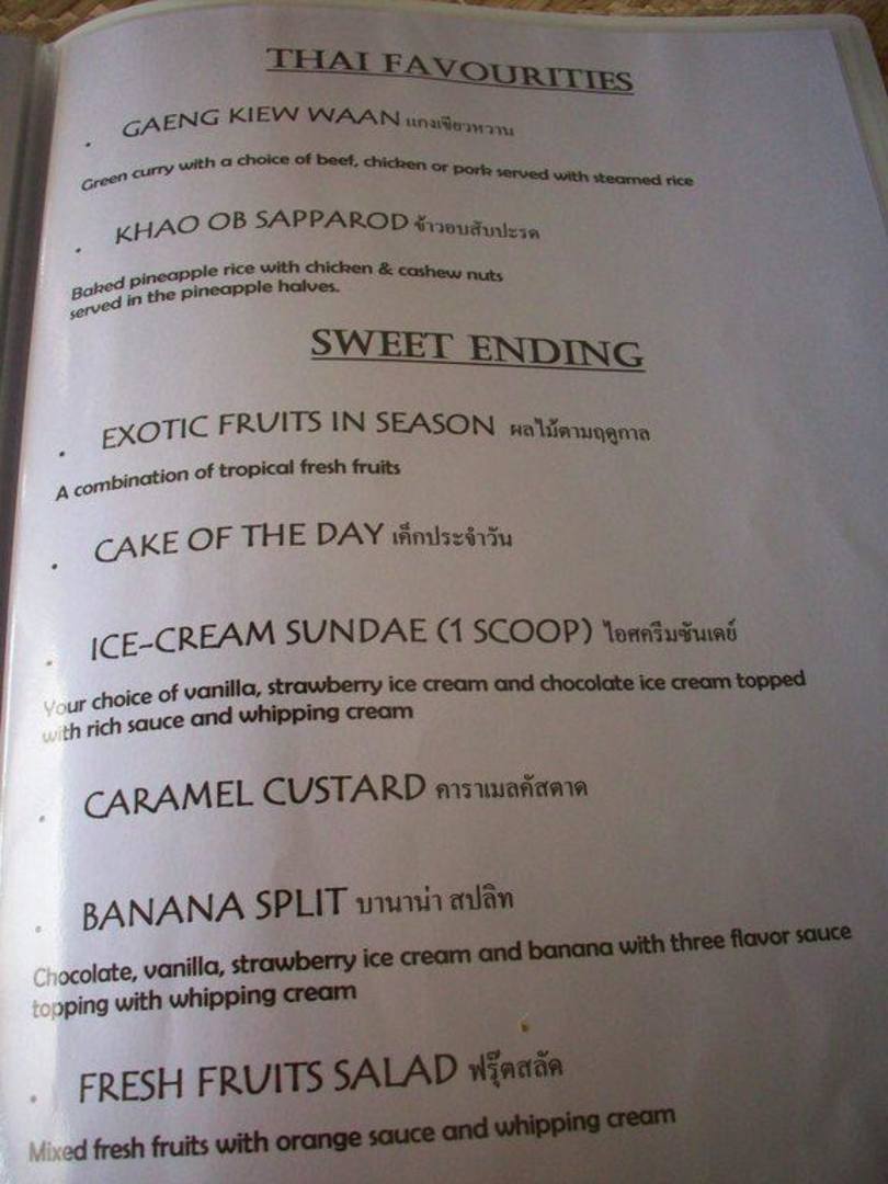 All inklusive Speisekarte Apsara Beachfront Resort & Villa - SHA Extra Plus