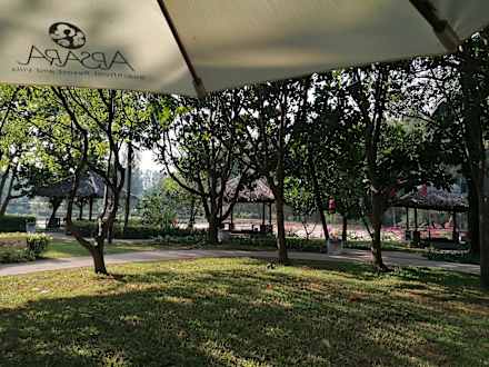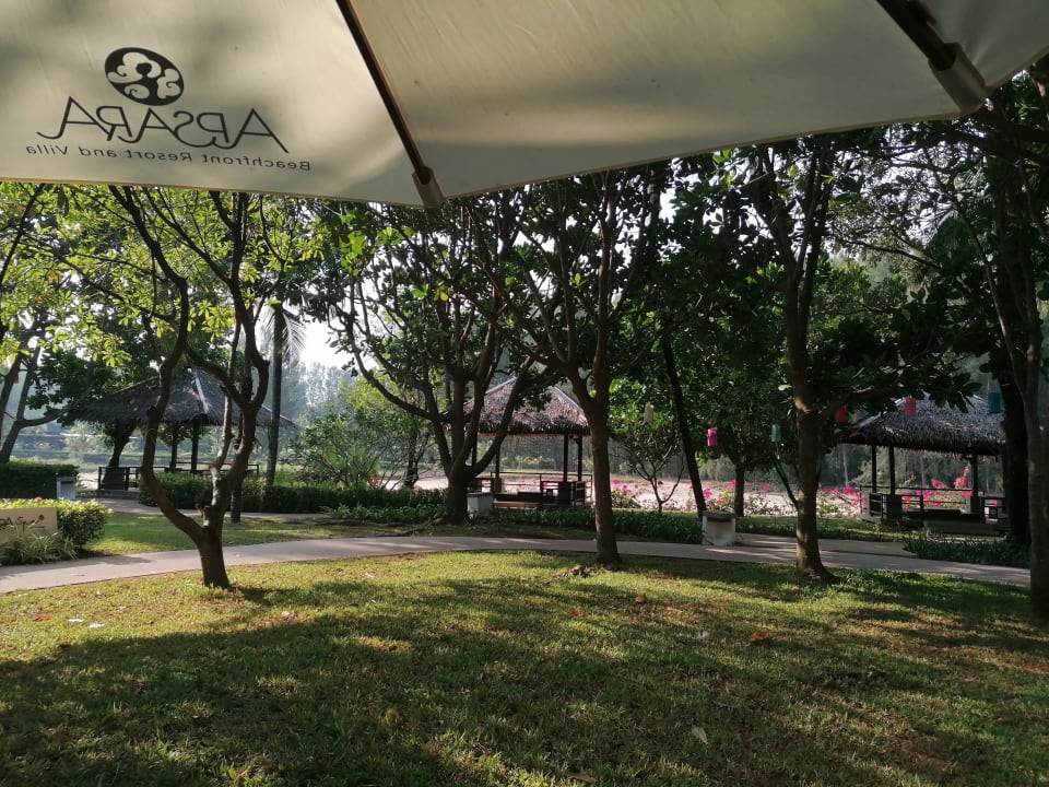 Blick auf die Häuschen für die Thaimassage