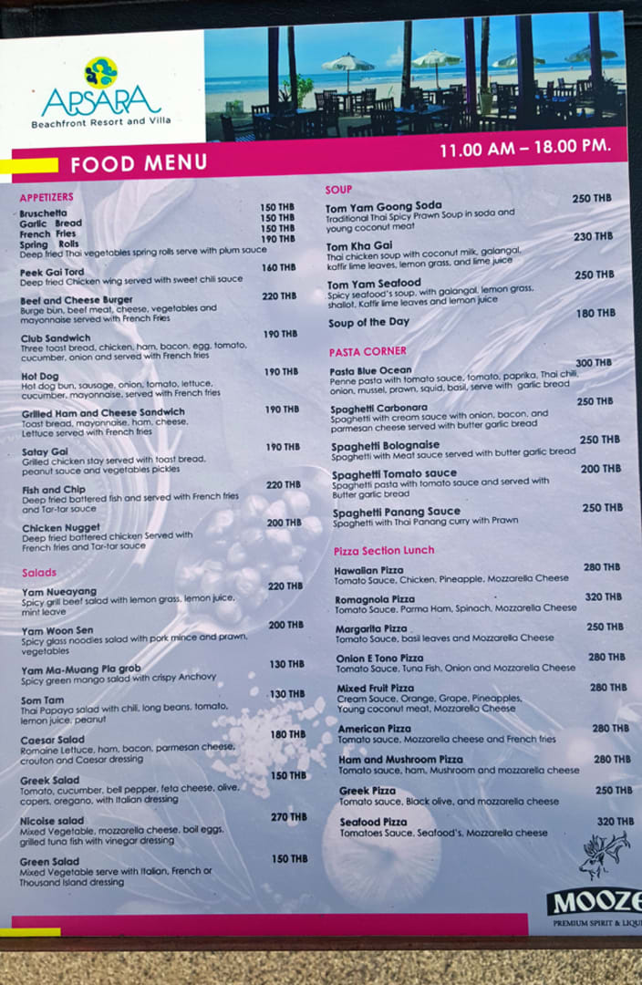 Mittagskarte in der Zeus-Bar (Nicht All-Inclusive)