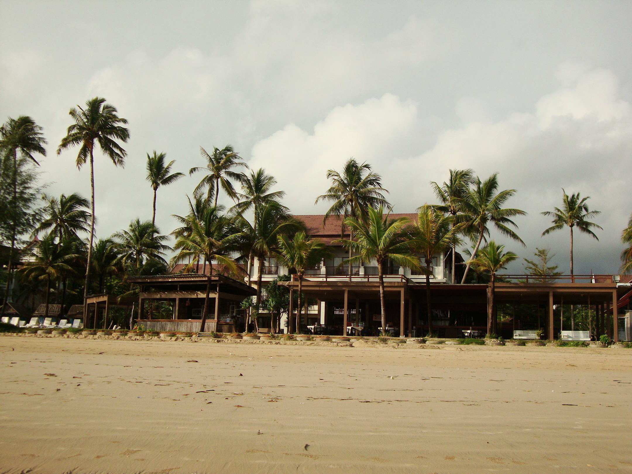 Blick auf die Zeus-Bar am Strand