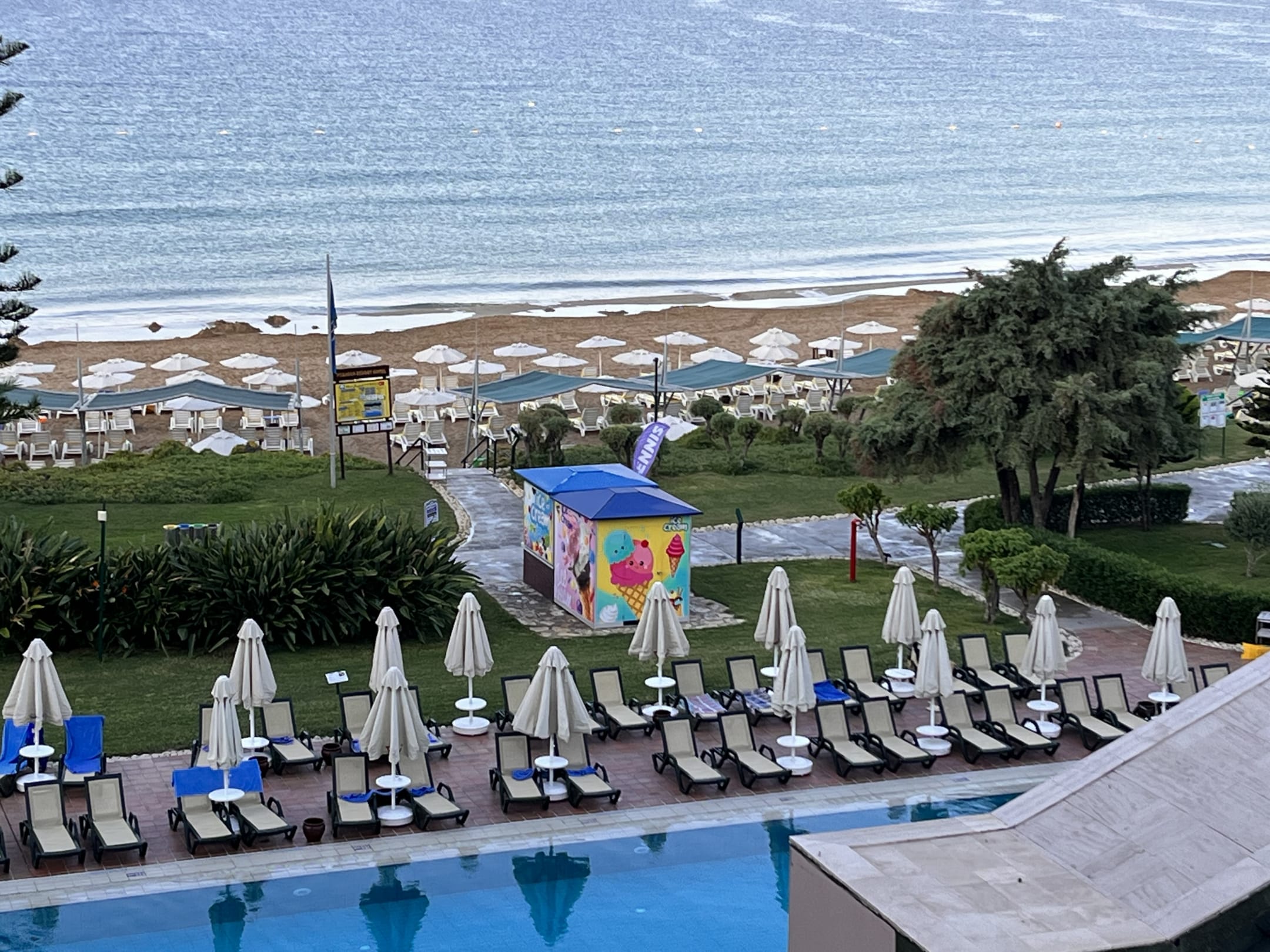 Alles liegt schön in der Nähe. Pools, Strand, Eis 🍦 😃