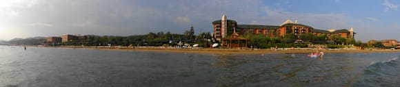 Widok na hotel od strony morza
