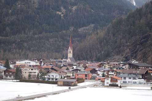 Blick vom Balkon zum Dorf Längenfeld