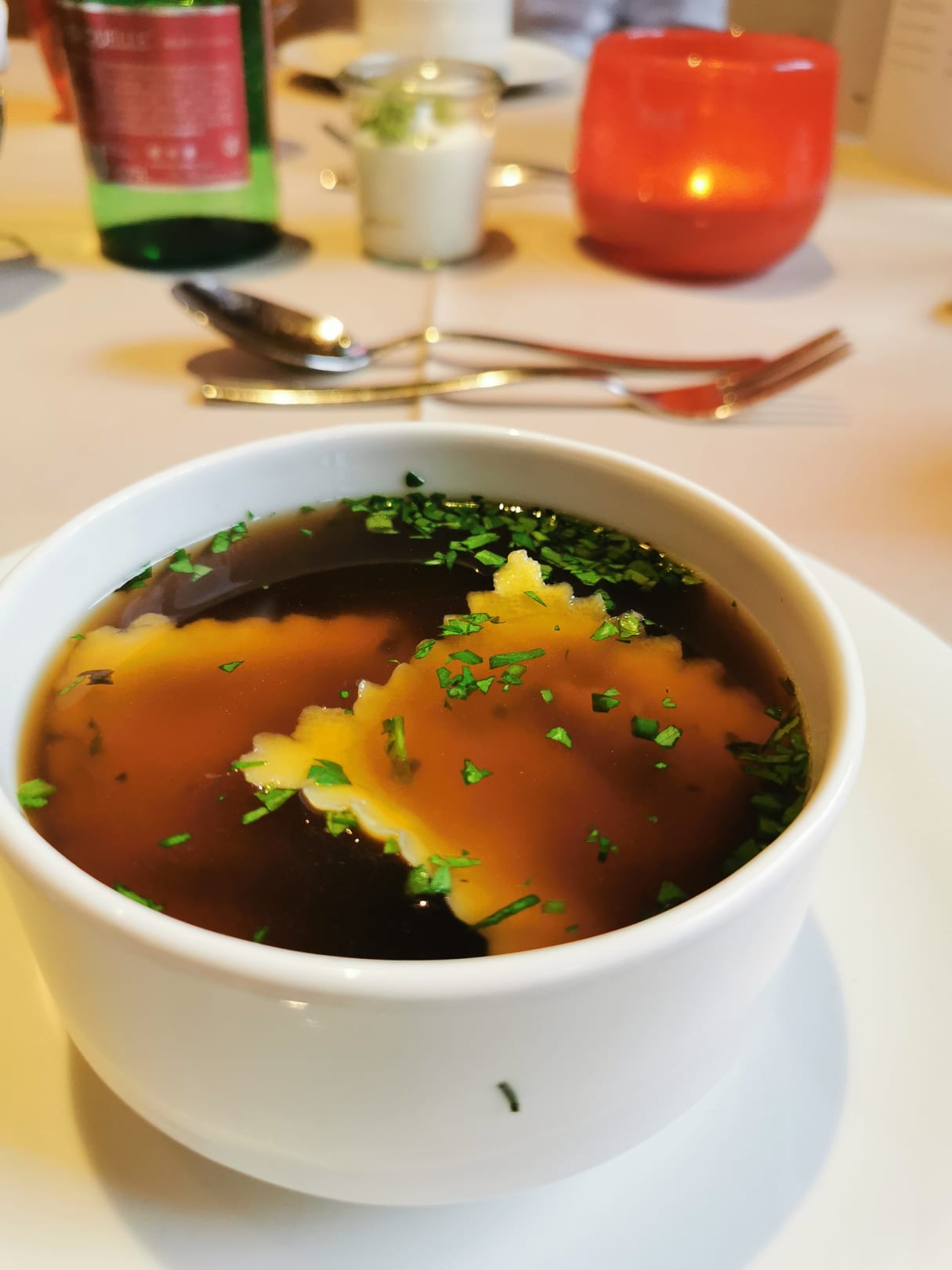 Suppe mit Schwammerl Ravioli