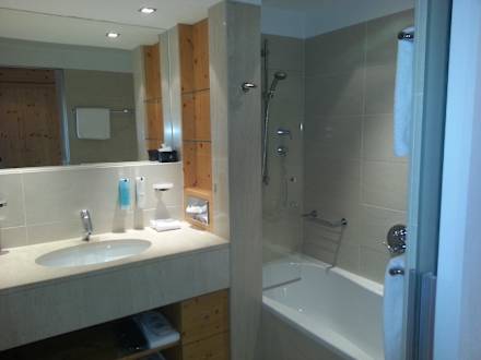 Großes und geräumiges Badezimmer mit viel Stauraum