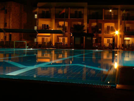 Nachts in der wunderschönen Poolanlage mitten im Hotel