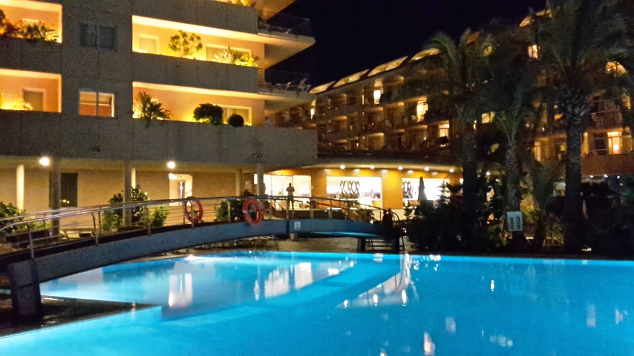 Poolanlage am Abend
