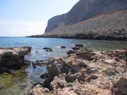 der Bucht, an der die beiden Hotels, AquaGrand und Lindos Mitsis, liegen: kein leichter Weg, nichts für Barfußgänger und stets schwierig ins Meer zu steigen, aber immer interessant und abwechselungsreich in Farbe und Form.