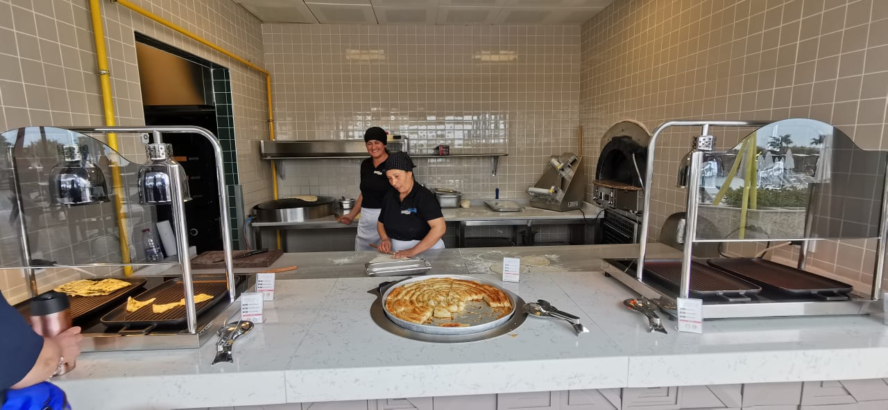 Verschiedene Essensgeschichten in der Nähe des Pools
