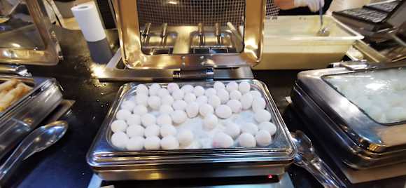 Das nicht sehr abwechslungsreiche Frühstücks-Buffet