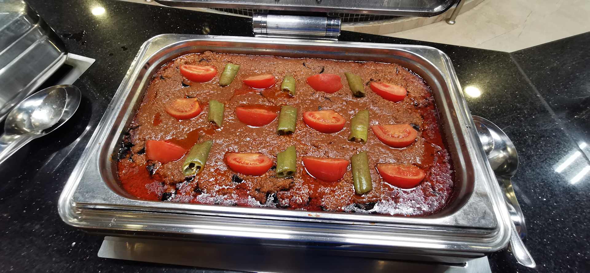 Ein Teil des nicht sehr abwechslungsreichen Buffet