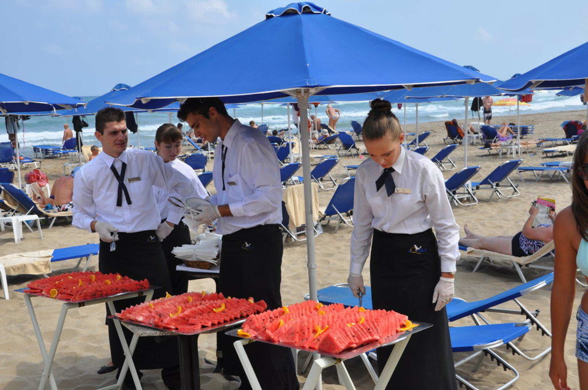 Melonen am StrandSamstag bringt die Crew frische kühle Melonen für die Gäste an den Strand!