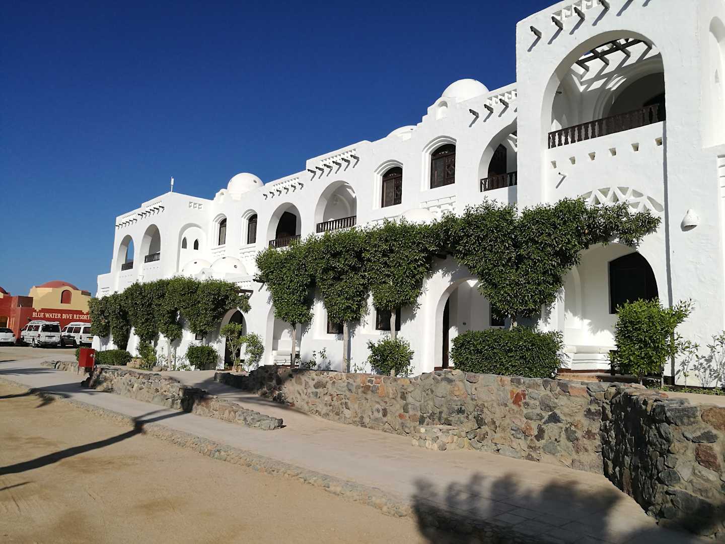 Nur zwei Stockwerke hoch. Dafür schön weitläufig verteilte Unterkünfte