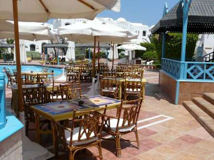 Bar und Tische neben Pool