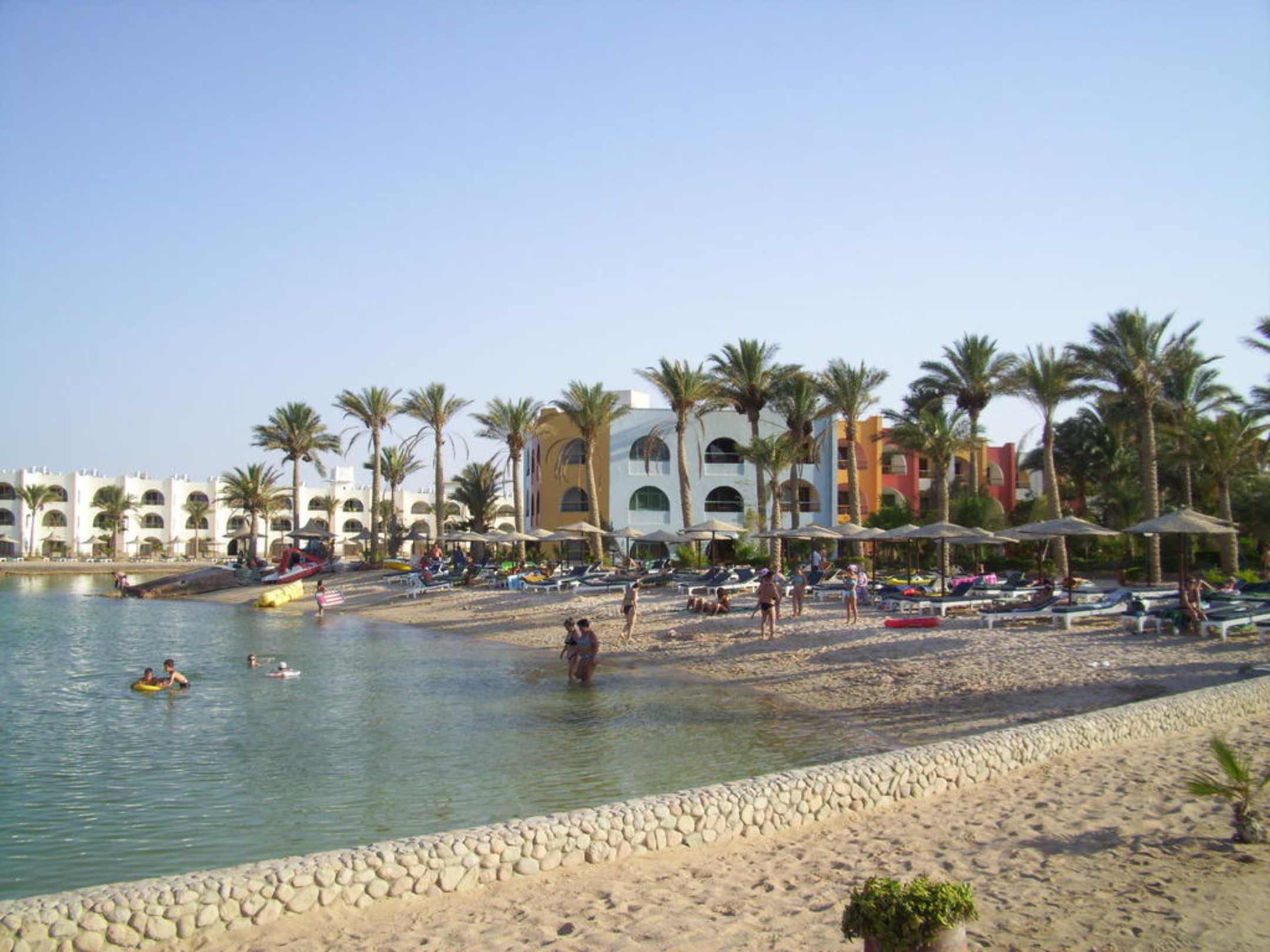 Blick zur B-Lagune (Wohngebäude ist noch im alten Weiß), vorn ist der Sandstrand